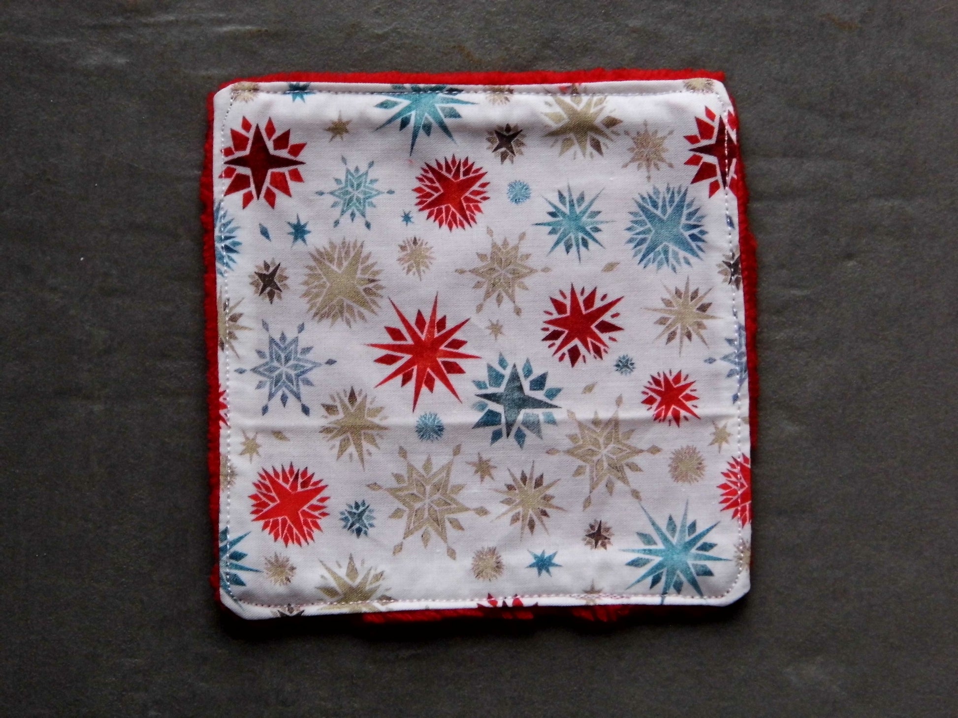 Carré démaquillant étoiles rouge, beige, bleu 12 X 12 et du tissu éponge bambou rouge