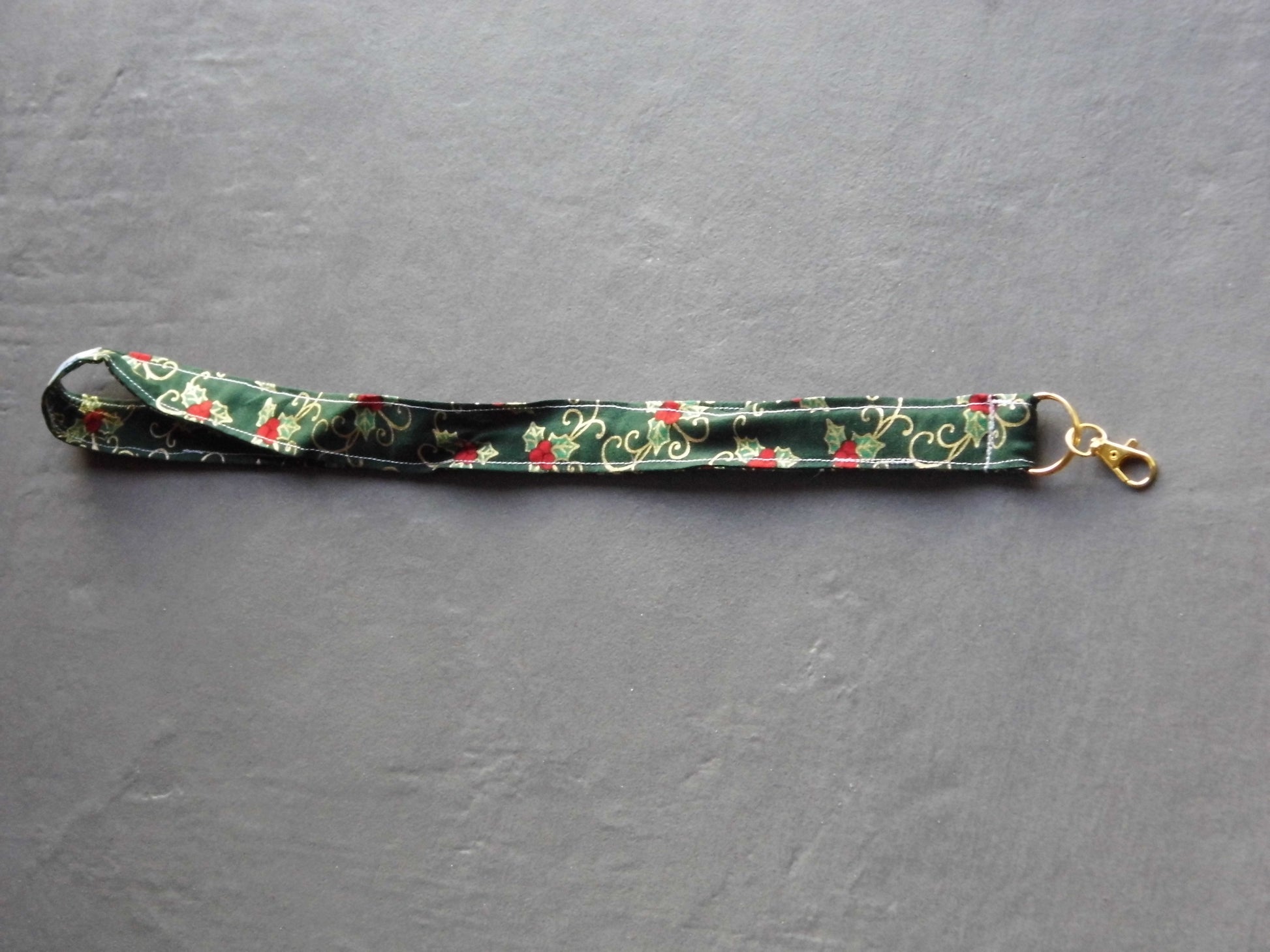 Dragonne de noël fond vert, houx rouge et liserer jaune